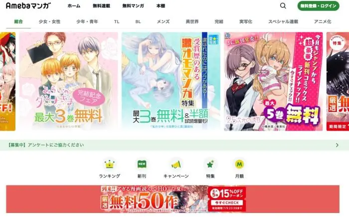 Amebaマンガの特徴