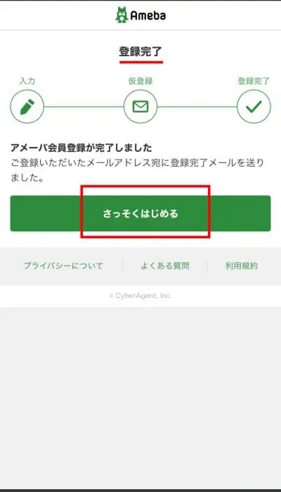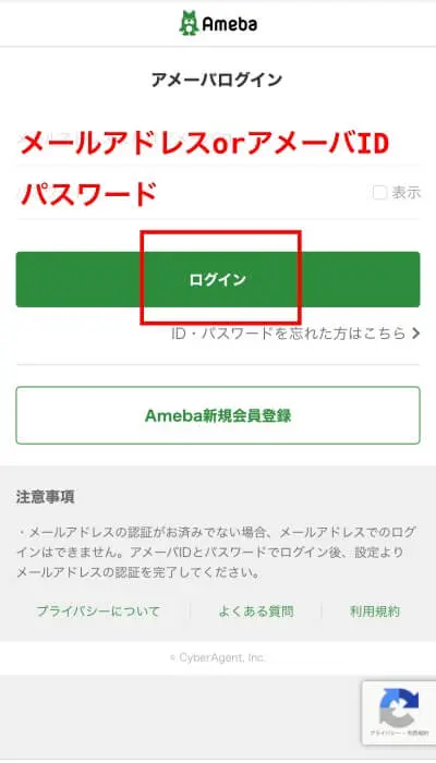 - Ameba会員登録が必須