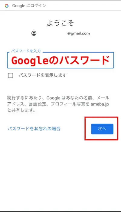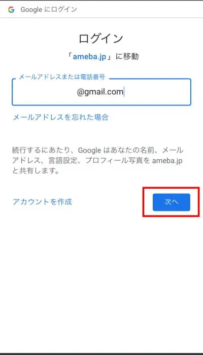 Ameba IDを保有しておらず、Googleアカウント(他SNS)でログインする場合