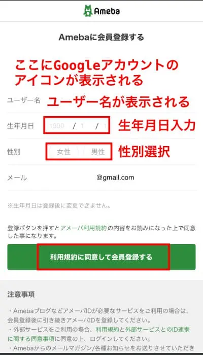 5.Ameba IDの登録とGoogleアカウントでのログインが完了